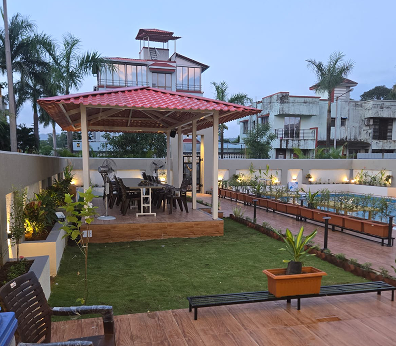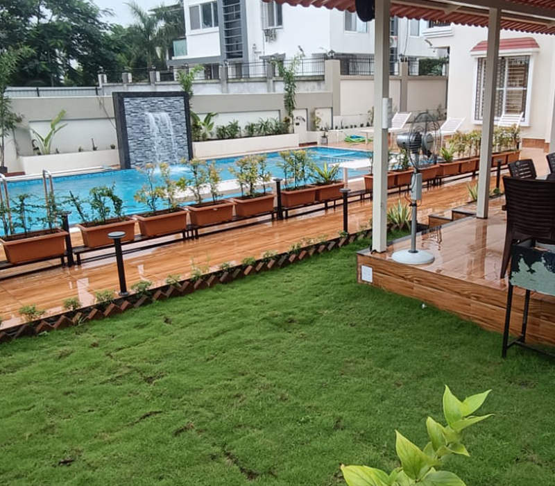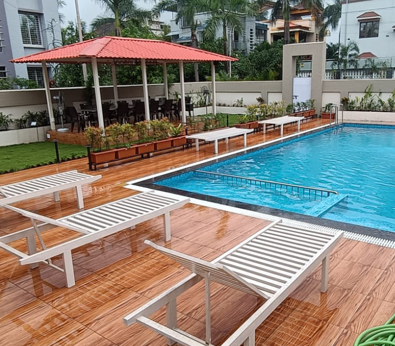 - Huge Exterior Sitout Area Covered and With Open Pool and Beach Beds.