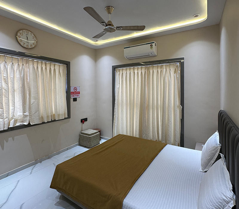 •-** ₹5,000/- Refundable security deposit to be payable at Check In will be given back at the time of check-out : Subject to Timely Checkout & No damages to the property.